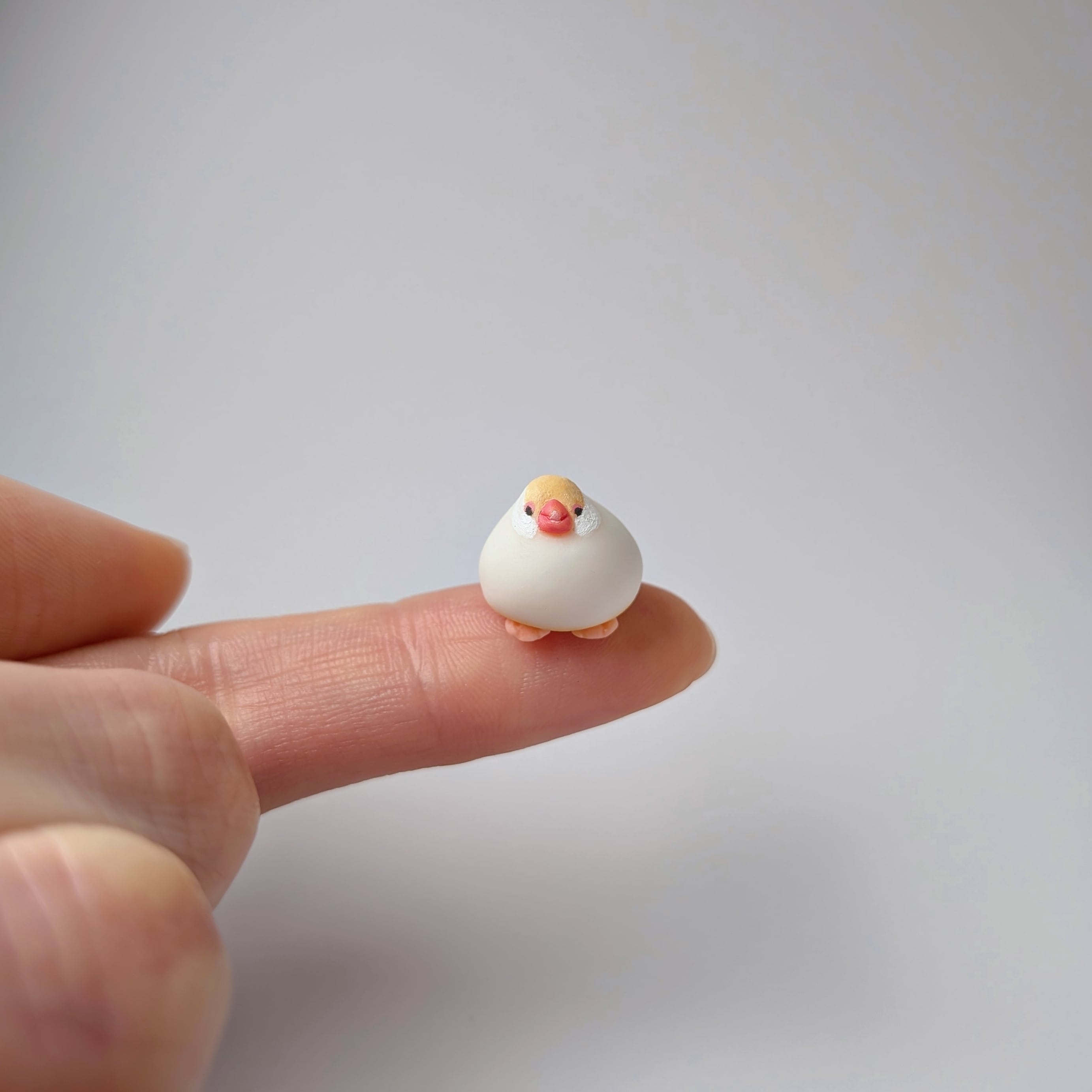 通常の鳥の置物の場合は1.5cmくらいのサイズ感(3枚目の写真参照)です。大きめの作品でも3cmほどのサイズです。